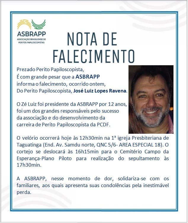 Nota de Falecimento, José Luiz Lopes Ravena
